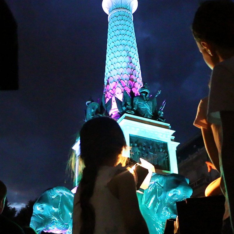 Inspiré par les valeurs du festival, Two Faces est construit sur le concept de dialogue et d’échange. Divisé en deux univers, seule l’interaction de deux acteurs permet de révéler la totalité des univers réunis en un seul masque.