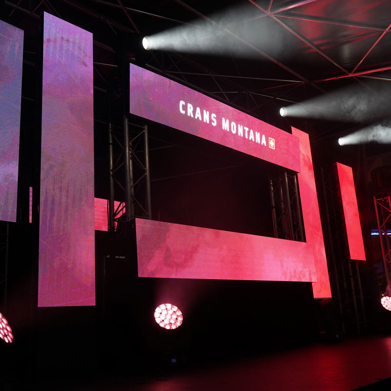 Sur la thématique de la Rioule*, le vidéo mapping sur la cabine DJ mélangeait prise de vues aériennes (drône), captation vidéos de paysage montagnard et graphisme polaire !